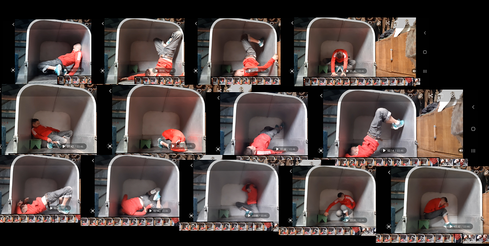 Eddie Ladd's SEED's Residency took place on her farm in Ceredigion. More specifically in an animal trailer. This site specific work has acclimated in this pentaptych of videos where the restrictiveness of the space has shaped the choreography and the question: "How can audiences view this work?"